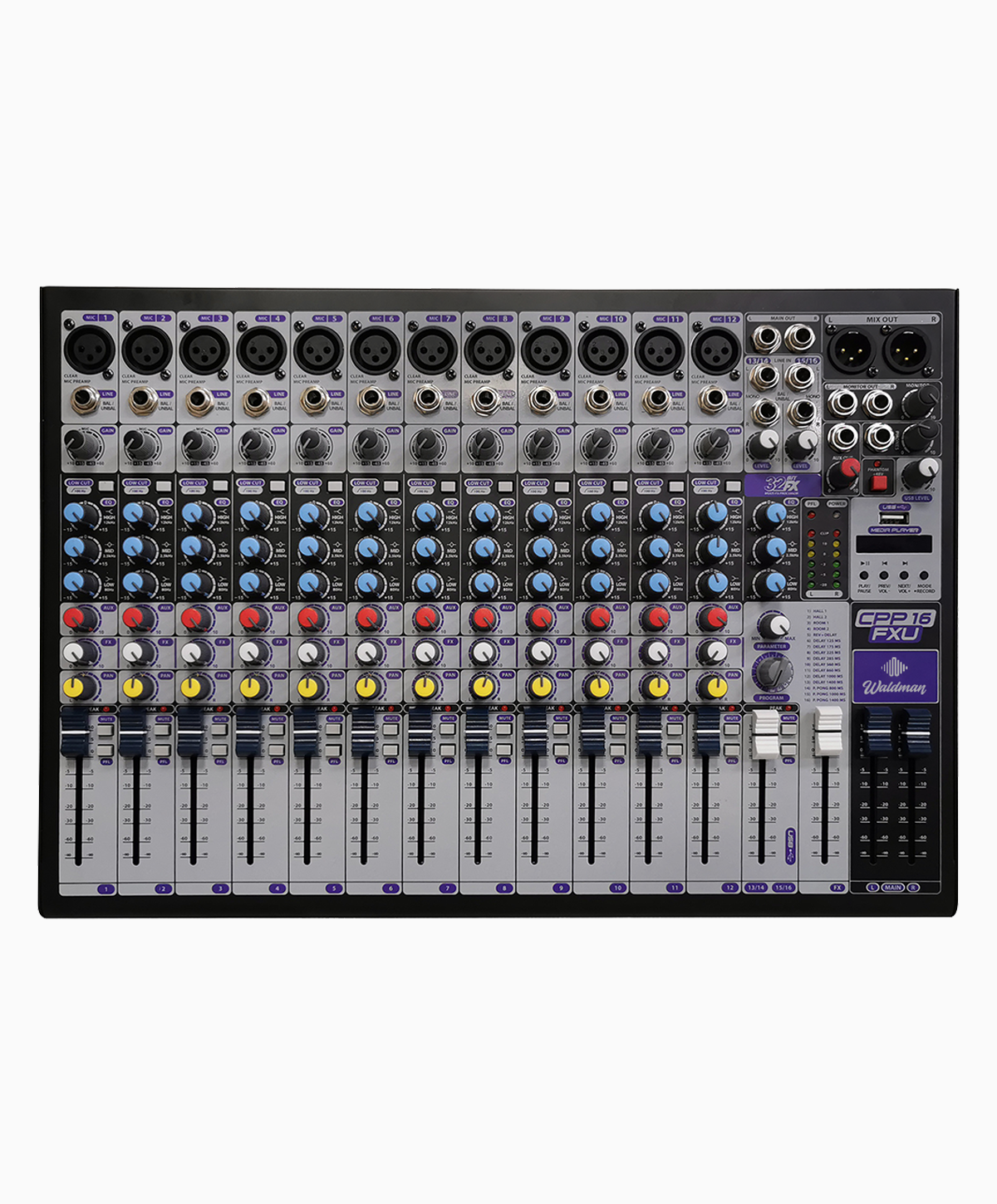 O Waldman Clear Pod Pro 16 FXU é um mixer profissional de 16 canais com 12 entradas XLR, 16 efeitos digitais, AUX Send, USB player integrado e phantom power 48V. Ideal para igrejas, bandas completas e eventos maiores.