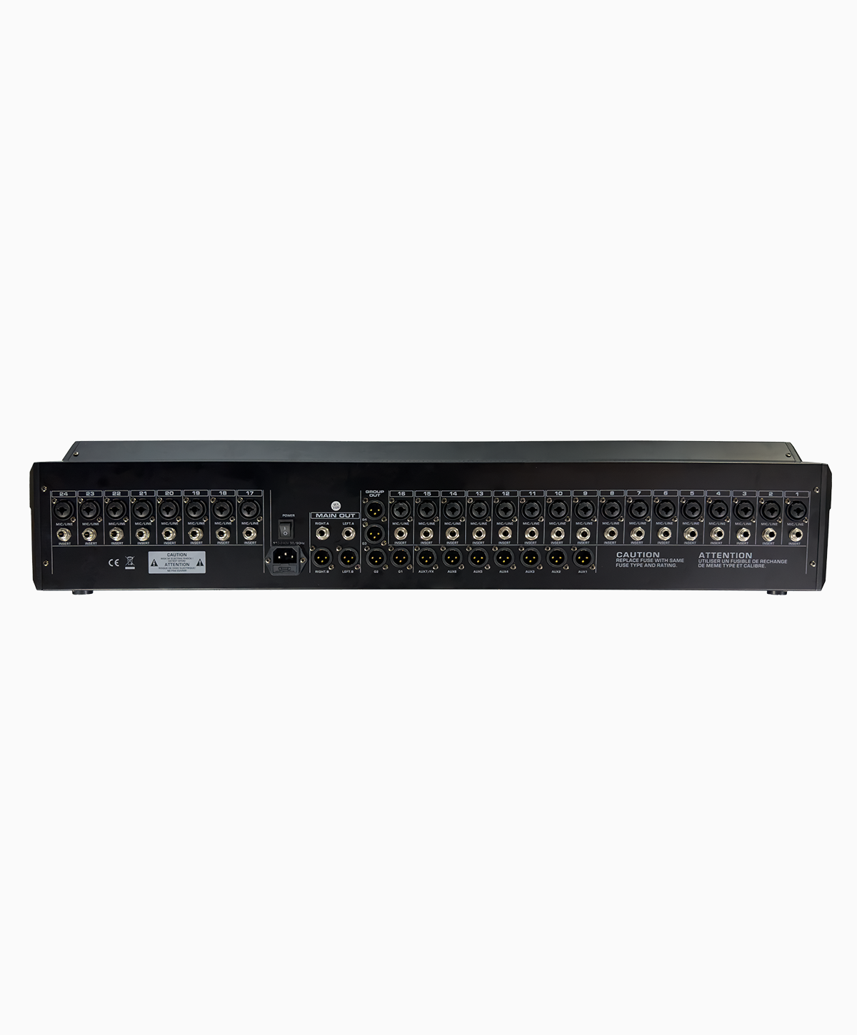 Com 24 canais, oferece maior flexibilidade de roteamento e maior capacidade de expansão para setups complexos.