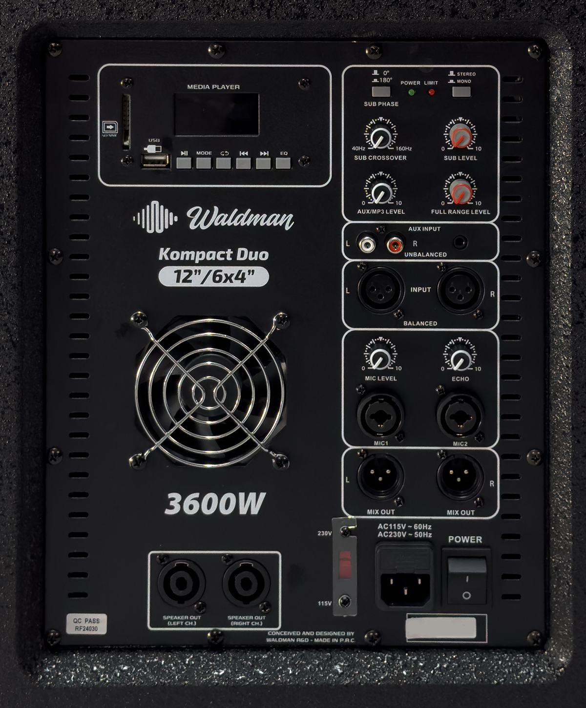O Waldman Kompact Duo 1264 oferece 900W RMS com subwoofer de 12” e coluna 3×4” + driver de 1”, sendo uma versão mais leve e portátil da série.