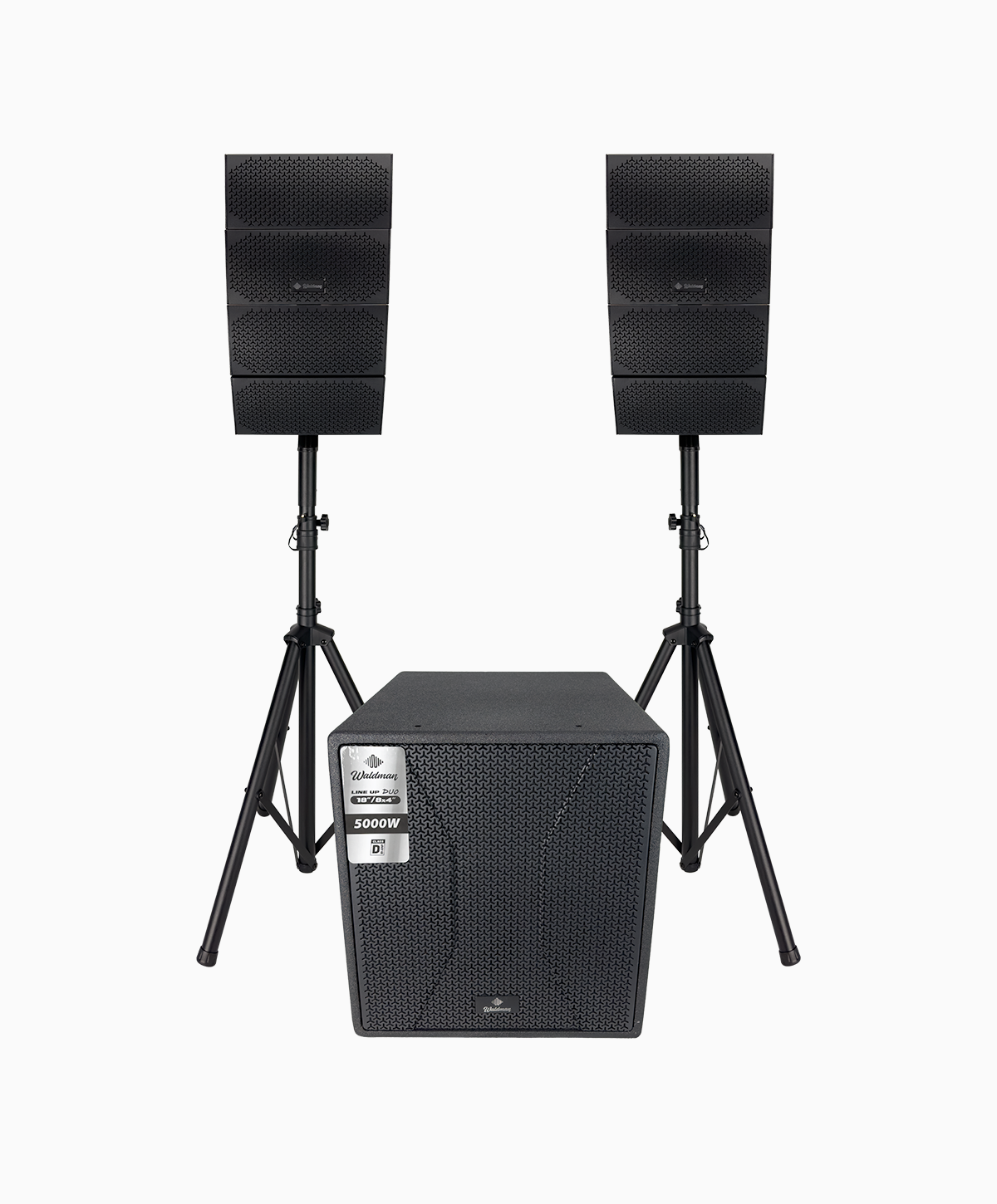 O Waldman Line Up Duo 1884 entrega 5000W de potência com subwoofer de 18” e coluna dupla 8×4”. Alto desempenho e graves profundos para eventos de maior porte.
