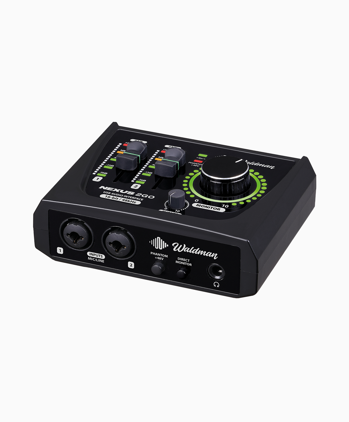 A Waldman Nexus 2GO é uma interface de áudio USB 2×2 compacta com phantom power 48V, monitoramento direto e gravação em até 24-bit/48kHz. Ideal para home studio, podcasts, voz, instrumentos e produção musical portátil.