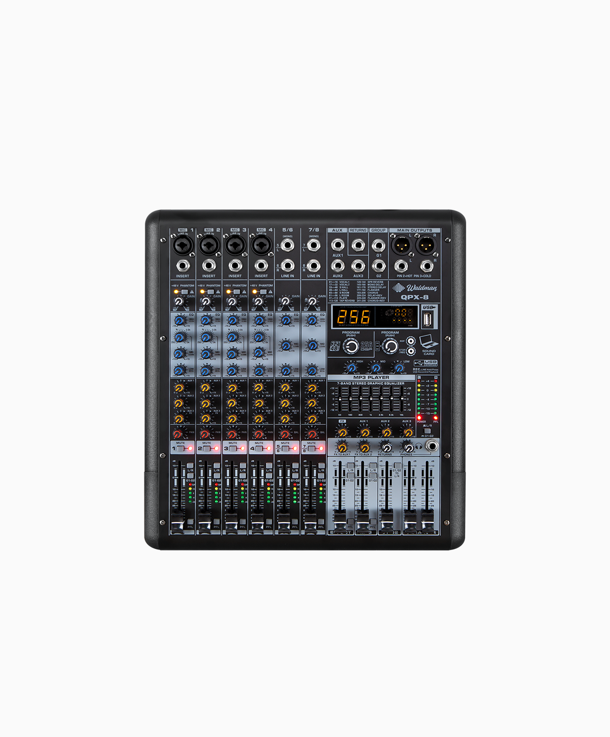 A Waldman Quadraphonyx 8 é a solução ideal para quem busca qualidade profissional em um formato compacto. Projetada para igrejas menores, estúdios caseiros, podcasts, músicos solo e eventos corporativos, ela combina recursos avançados com operação intuitiva.