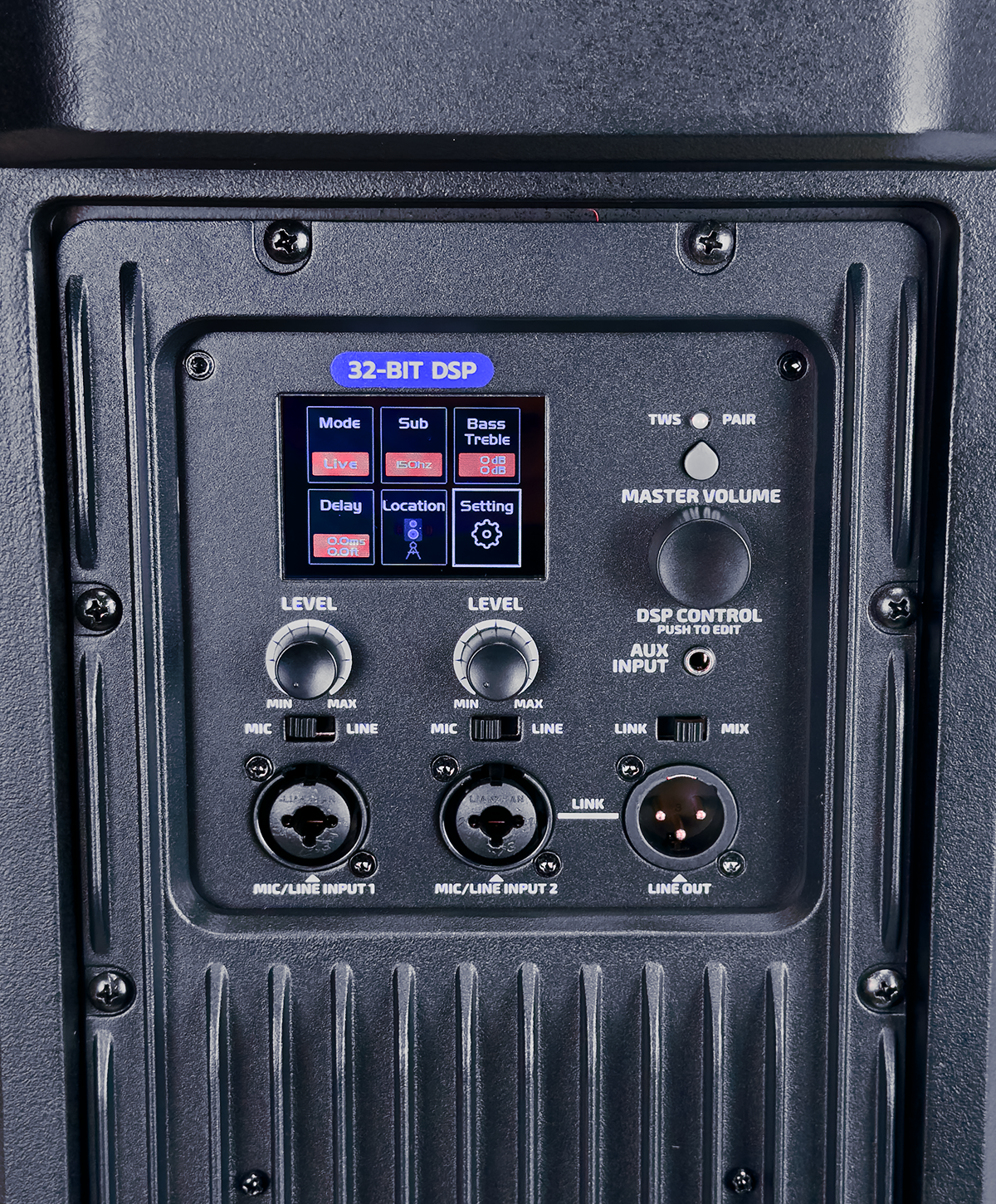 Seu sistema DSP 32-bits oferece controle completo de áudio com: