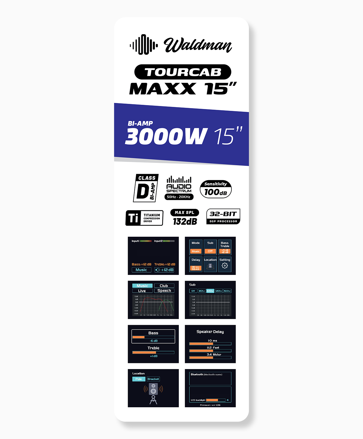 A Waldman Tourcab MAXX 15″ representa o topo da linha TourCab, desenvolvida para aplicações profissionais que exigem alta pressão sonora, robustez e controle avançado de processamento digital.